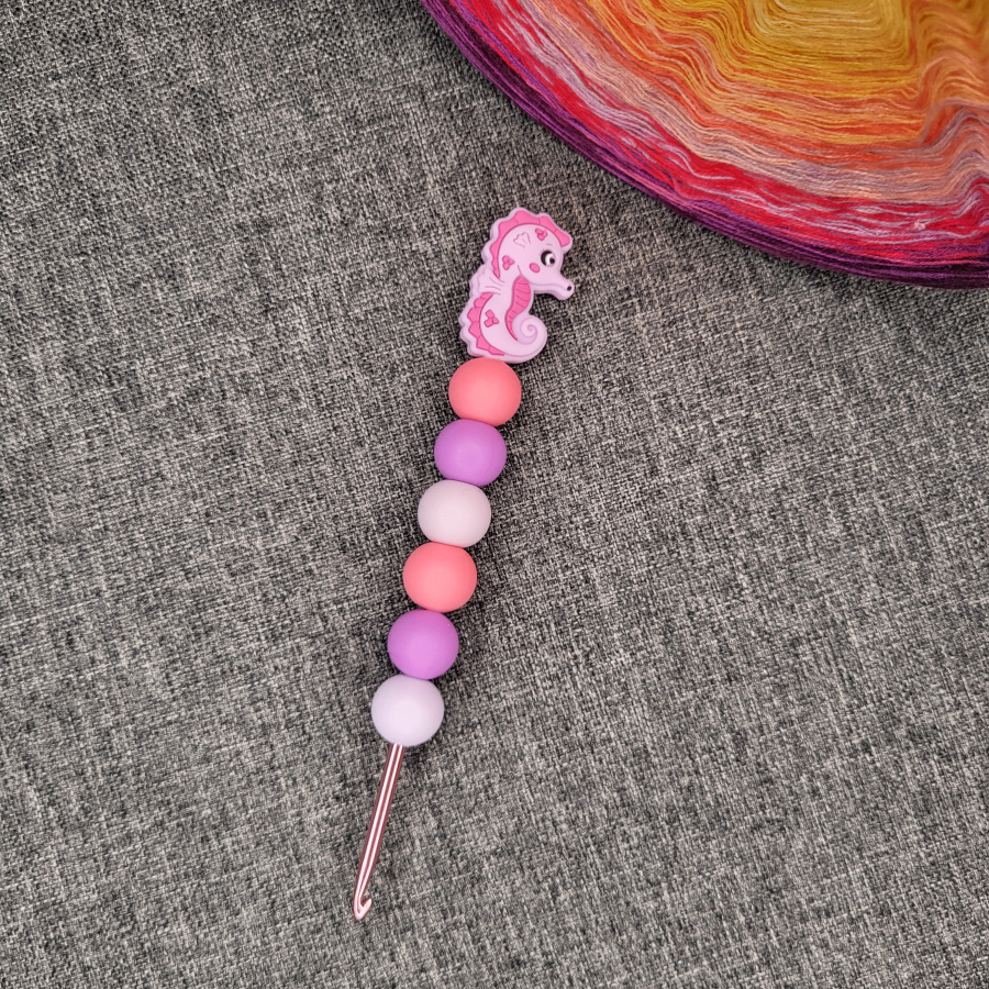Tyto háčky jsou vyrobeny z hliníku a rukojeť je zdobena silikonovými korálky. Silikonová rukojeť je měkká na dotek, lehká a protiskluzová. Každý háček byl vyroben 1x.