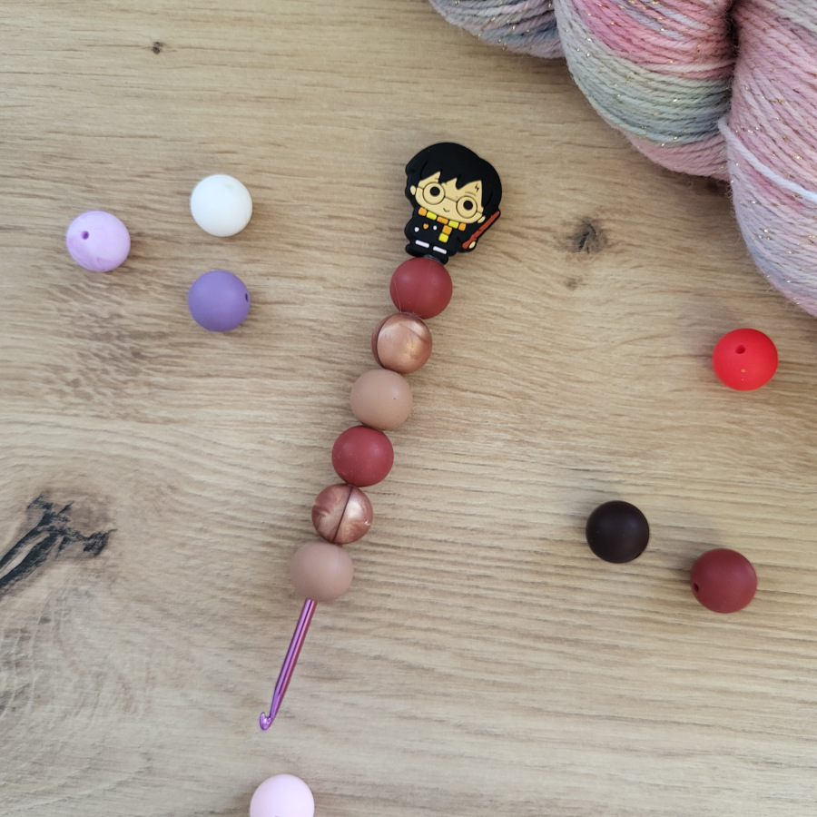 Tyto háčky jsou vyrobeny z hliníku a rukojeť je zdobena silikonovými korálky. Silikonová rukojeť je měkká na dotek, lehká a protiskluzová. Každý háček byl vyroben 1x.