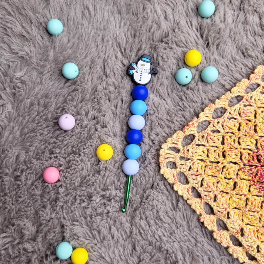 Tyto háčky jsou vyrobeny z hliníku a rukojeť je zdobena silikonovými korálky. Silikonová rukojeť je měkká na dotek, lehká a protiskluzová. Každý háček byl vyroben 1x.
