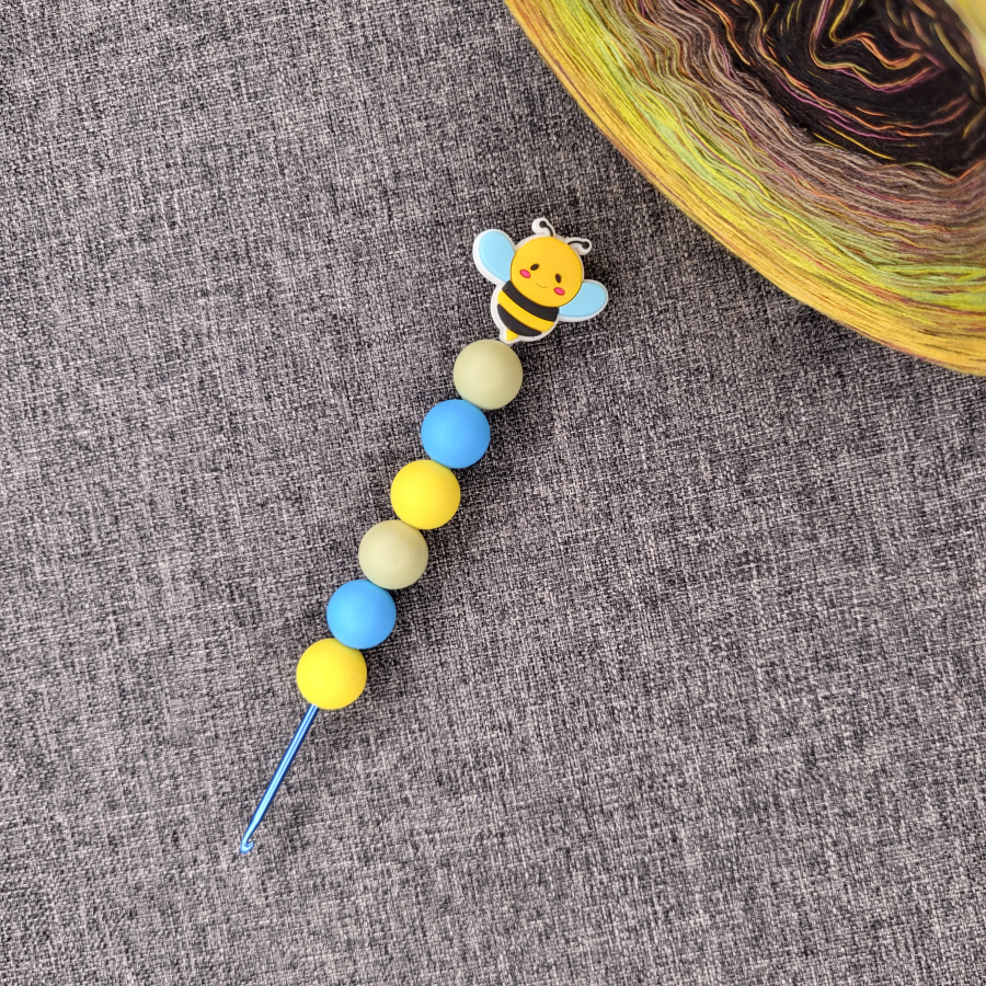 • Háček z hliníku s ručně zdobenou silikonovou rukojetí s korálky.