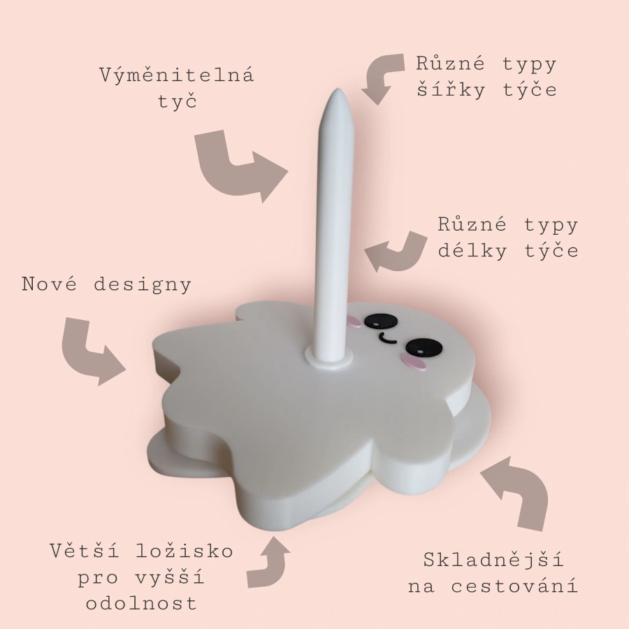 Tyč: Klubkotoč se dodává se základní tyčí (průměr 15mm, výška 117mm). Je možné přiobjednat jinou tyč nebo tyč na přání.