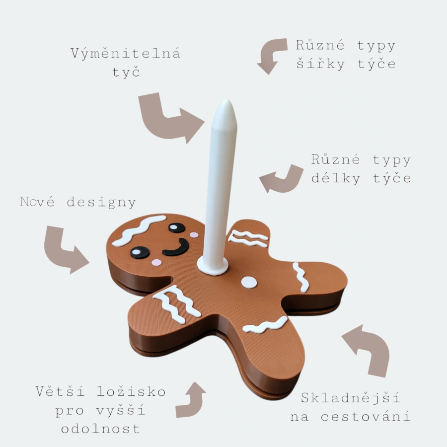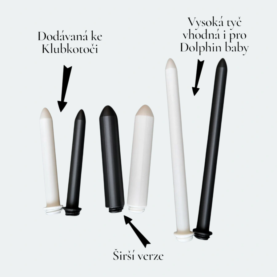 Tyč: Klubkotoč se dodává se základní tyčí (průměr 15mm, výška 117mm). Je možné přiobjednat jinou tyč nebo tyč na přání.