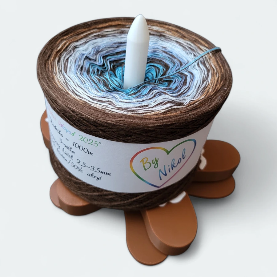 Tento otočný stojánek je určený pro klubíčka až do 1500 m a zajišťuje plynulý pohyb příze při práci. Díky zabudovanému ložisku se klubíčko otáčí zcela bez námahy, což minimalizuje zamotávání a udržuje plynulý tok příze. Je určený především pro odvíjení klubíčka z venkovní části klubíčka.