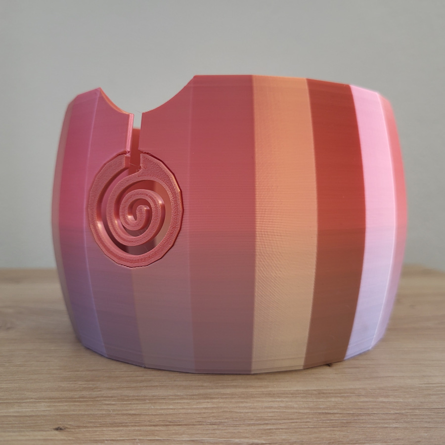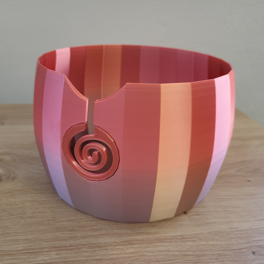 Miska je vyrobena metodou 3D tisku, při které jsou viditelné jednotlivé vrstvy a drobné nedostatky způsobené touto metodou. Nehladký nebo šrafovaný povrch není závadou a nejedná se tedy o vadu výrobku. Spirála je do misky vlepována pomocí lepidla, na vnitřní straně misky mohou být vidět stopy lepidla.