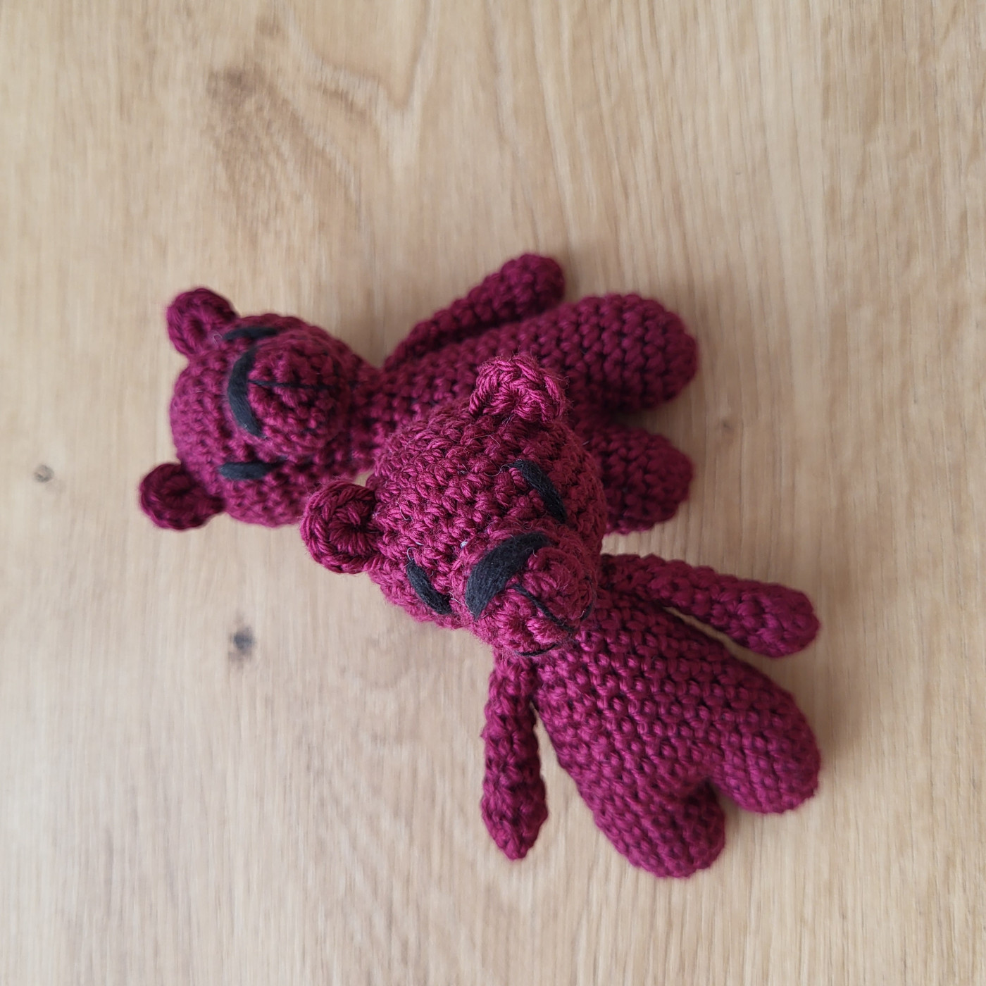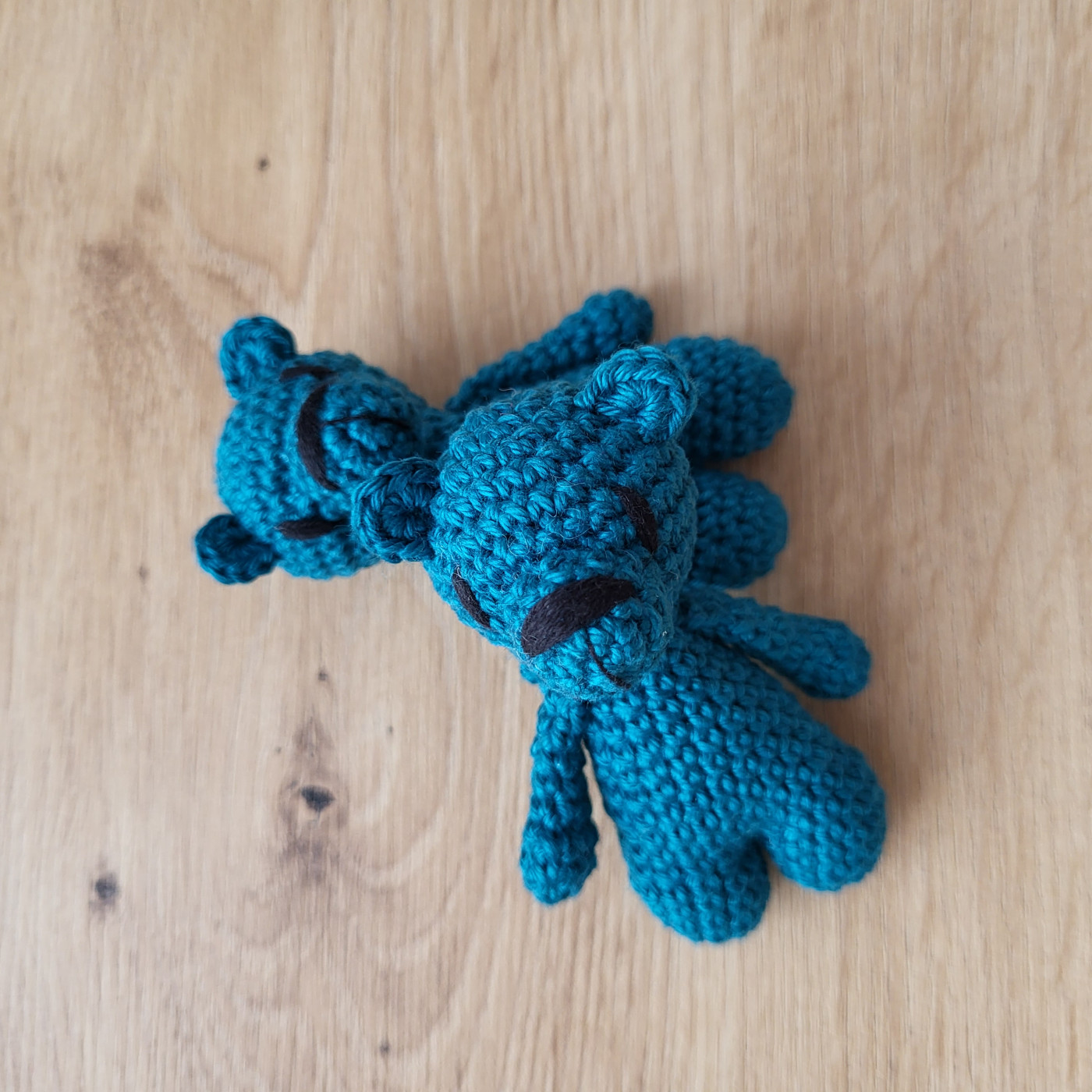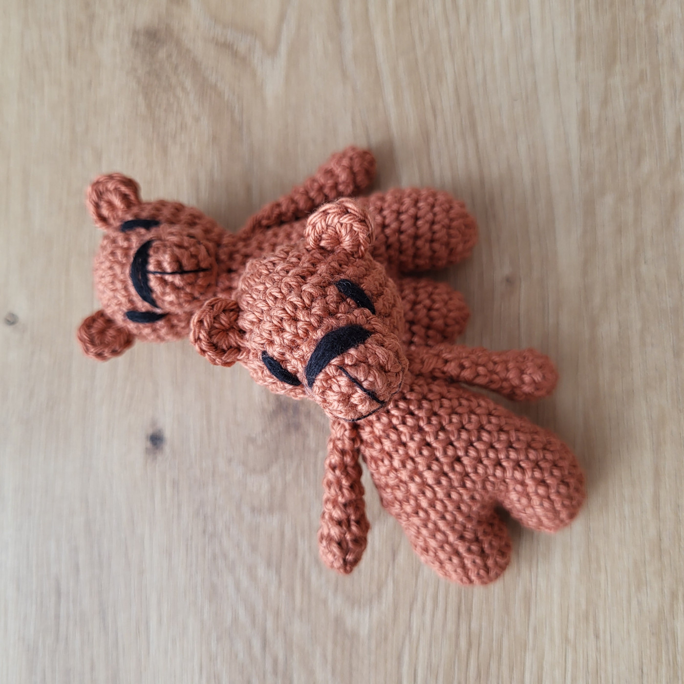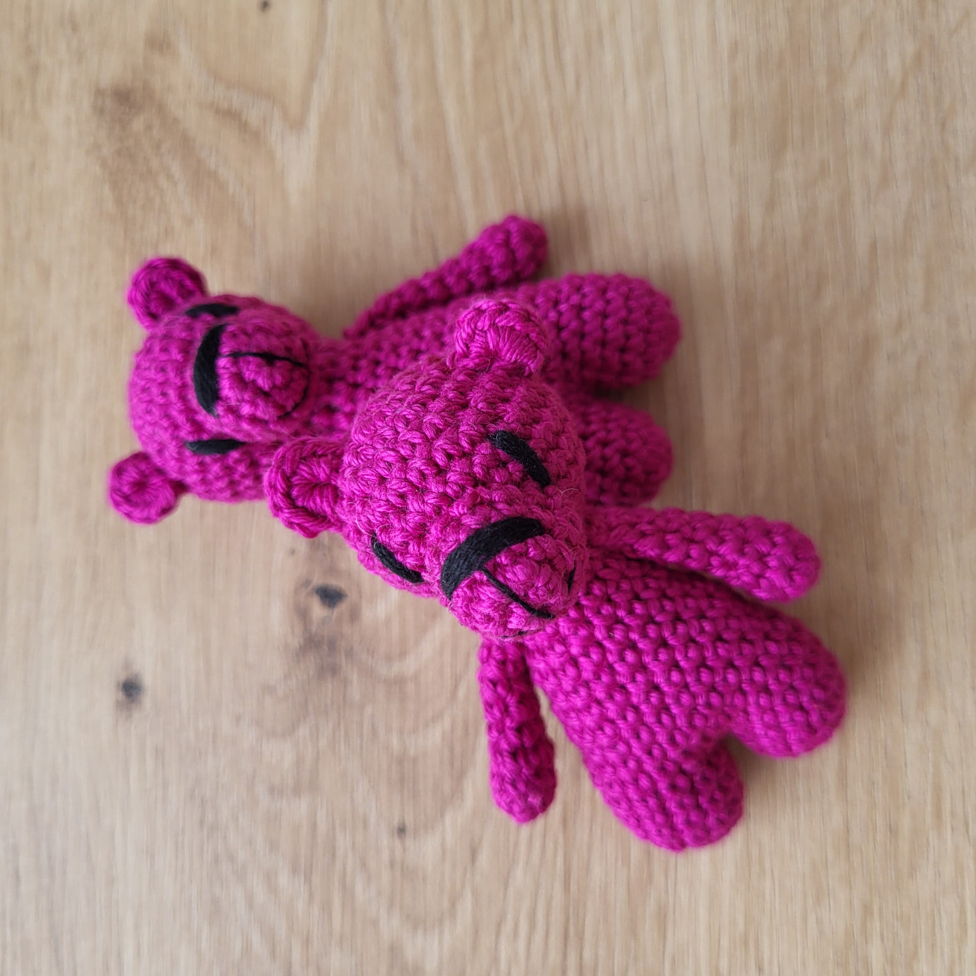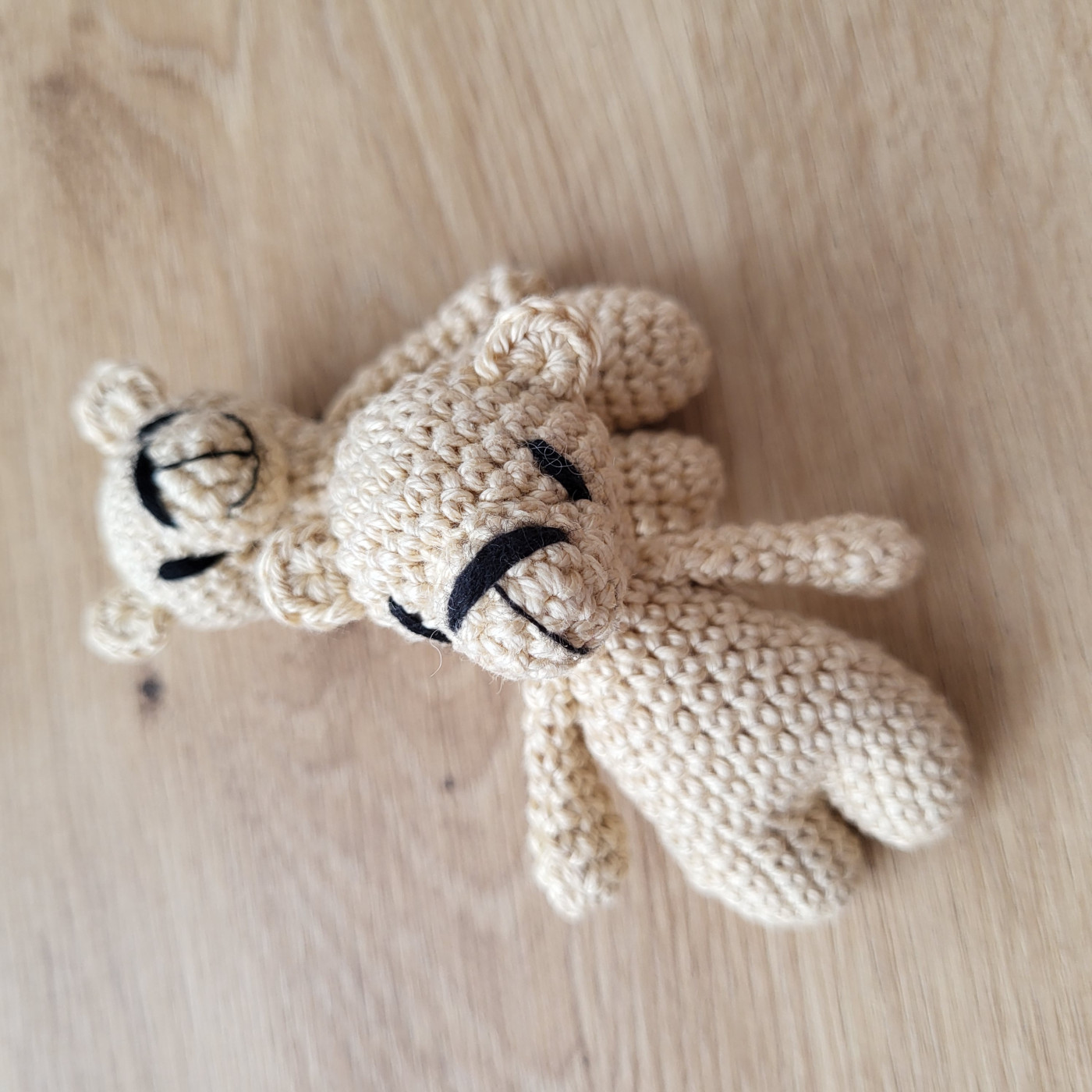 Samotná výroba jednoho medvídka trvá více než dvě a půl hodiny. Každý kus postupně vzniká háčkováním jednotlivých částí, jejich pečlivým sešitím a finálním dotvořením detailů. Je to proces, který nelze uspěchat – každý sloupek má své místo a svůj čas. Právě díky ruční práci je každý medvídek originál.